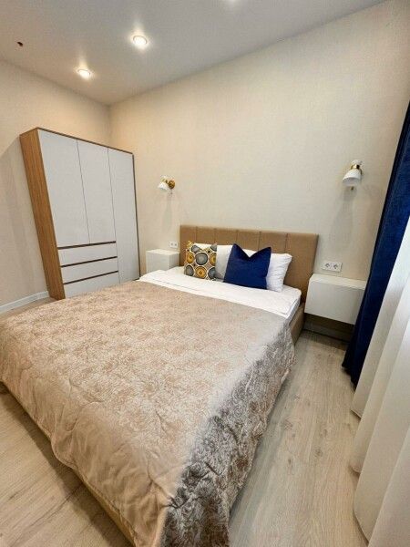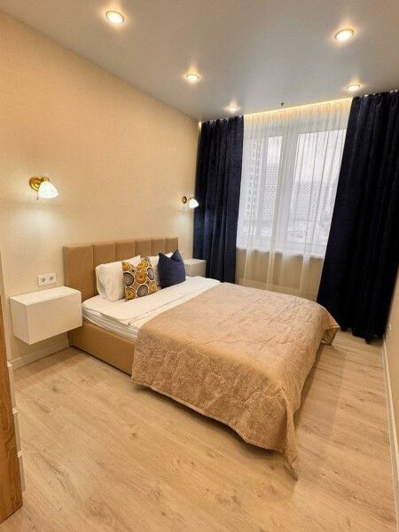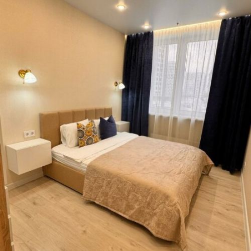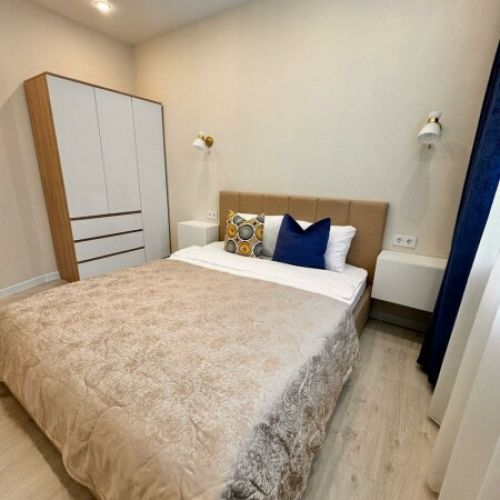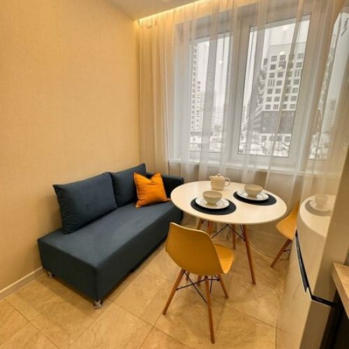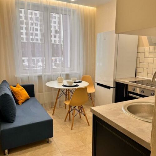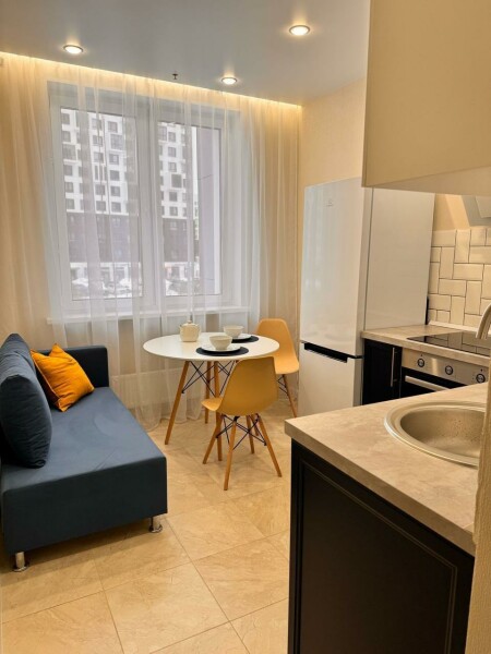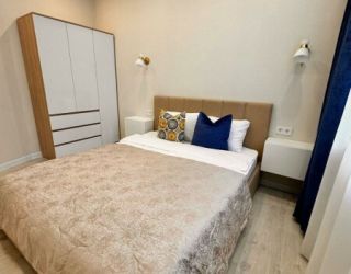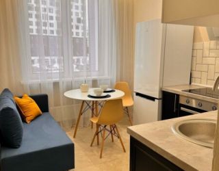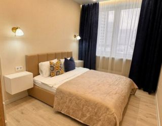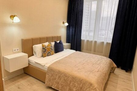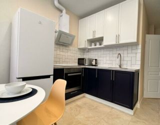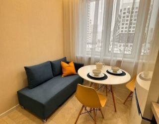 Уютные однокомнатные апартаменты, оформленные в бежевых тонах с добавлением ярких цветовых акцентов, размещены в новом жилом квартале. В спальне на большой кровати могут разместиться 2 гостя. Кухня-гостиная располагает обеденным уголком с диваном и всем необходимым для самостоятельного приготовления блюд. Обустроена отдельная гардеробная. Ванная комната снабжена стиральной машиной. Возможно подключение к Wi-Fi. По согласованию доступно заселение с питомцем.